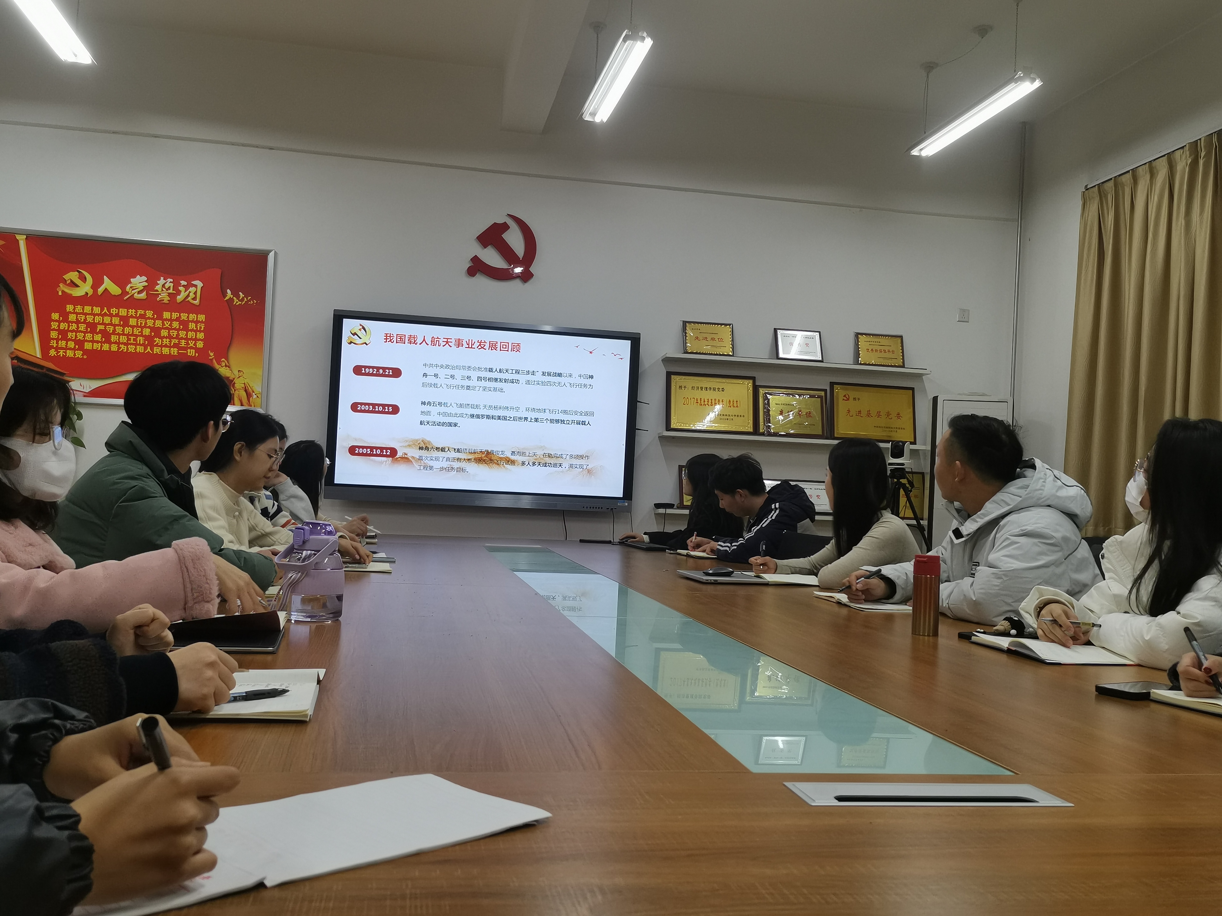 会上,办公室、新宣部领学人以我国载人航天事业相关内容为主题,深刻学习了载人航天精神的内涵及意义,进一步认识到新时代弘扬载人航天精神的必要性。就业实践部、权益心理部领学人围绕习近平总书记系列讲话精神展开学习,深入领会了系列讲话所蕴含的深刻内涵和哲学智慧,认识到了马克思主义中国化时代化的重要性。学术部领学人深入学习了“一带一路”国际合作相关知识,深刻了解了“一带一路”战略对于国家发展的重要地位。文体部、留学生事务部领学人以中国共产党人精神谱系的学习为重点,让大家对中国共产党的光辉历史和伟大事业有了更加清晰的认识。