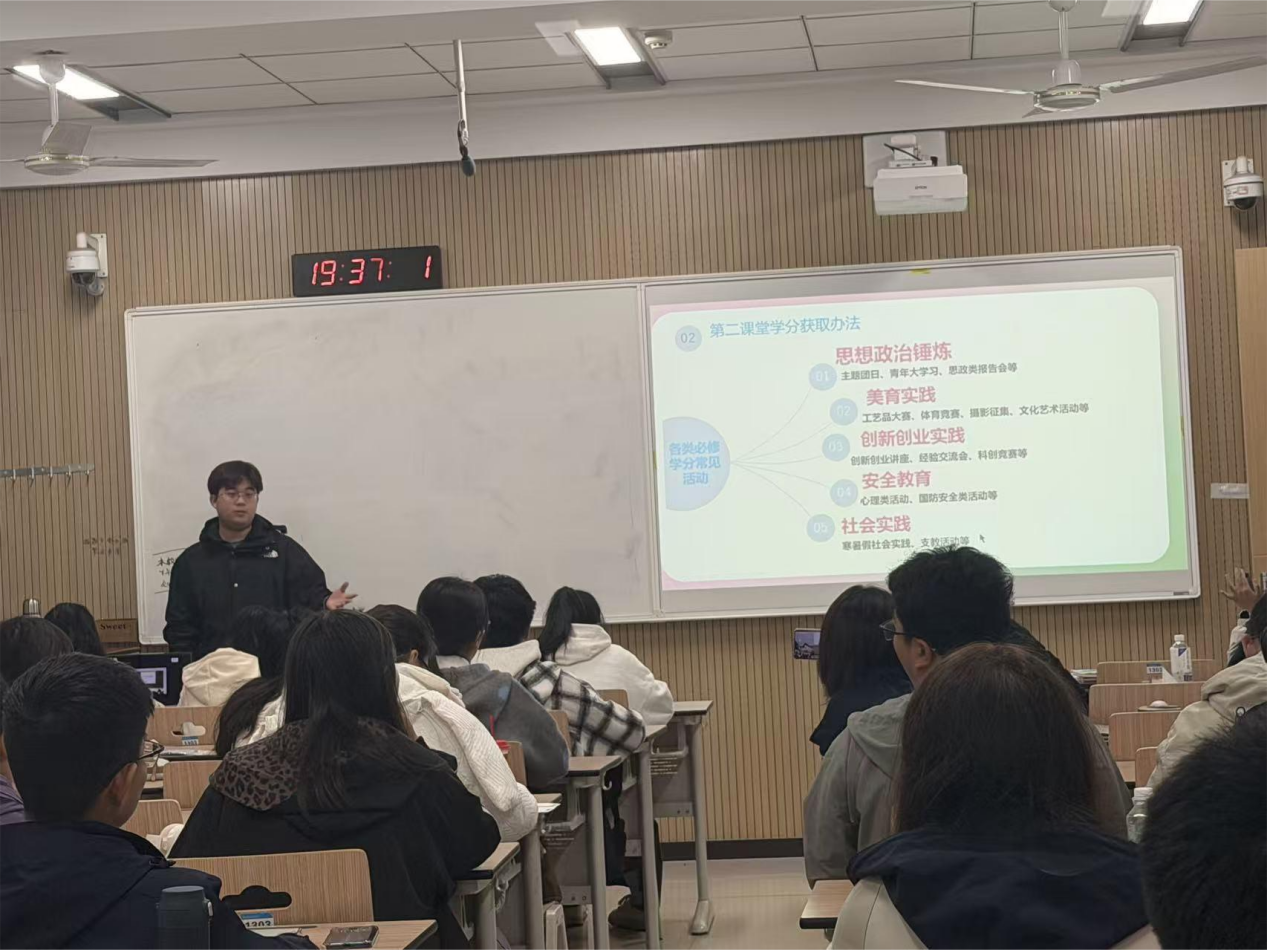 为助力2025级新生深入知晓第二课堂成绩单制度,妥善解决他们在前期宣讲中提出的疑问,350vip浦京集团官网团委素质拓展部于2025年11月1日晚,在南校区一号教学楼S1303教室举办“第二课堂成绩单制度答疑解惑宣讲会”。