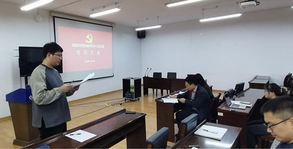 为进一步加强党支部建设,充分发挥党组织的凝聚力、战斗力和创造力,根据党支部委员增补选举工作安排,西部农村发展研究中心党支部于2024年11月22日在学院C401会议室召开了党支部委员补选选举会议。支部书记刘军弟同志、教师党员闫振宇同志等全体师生党员参加会议,会议由支部副书记杨洋同志主持。