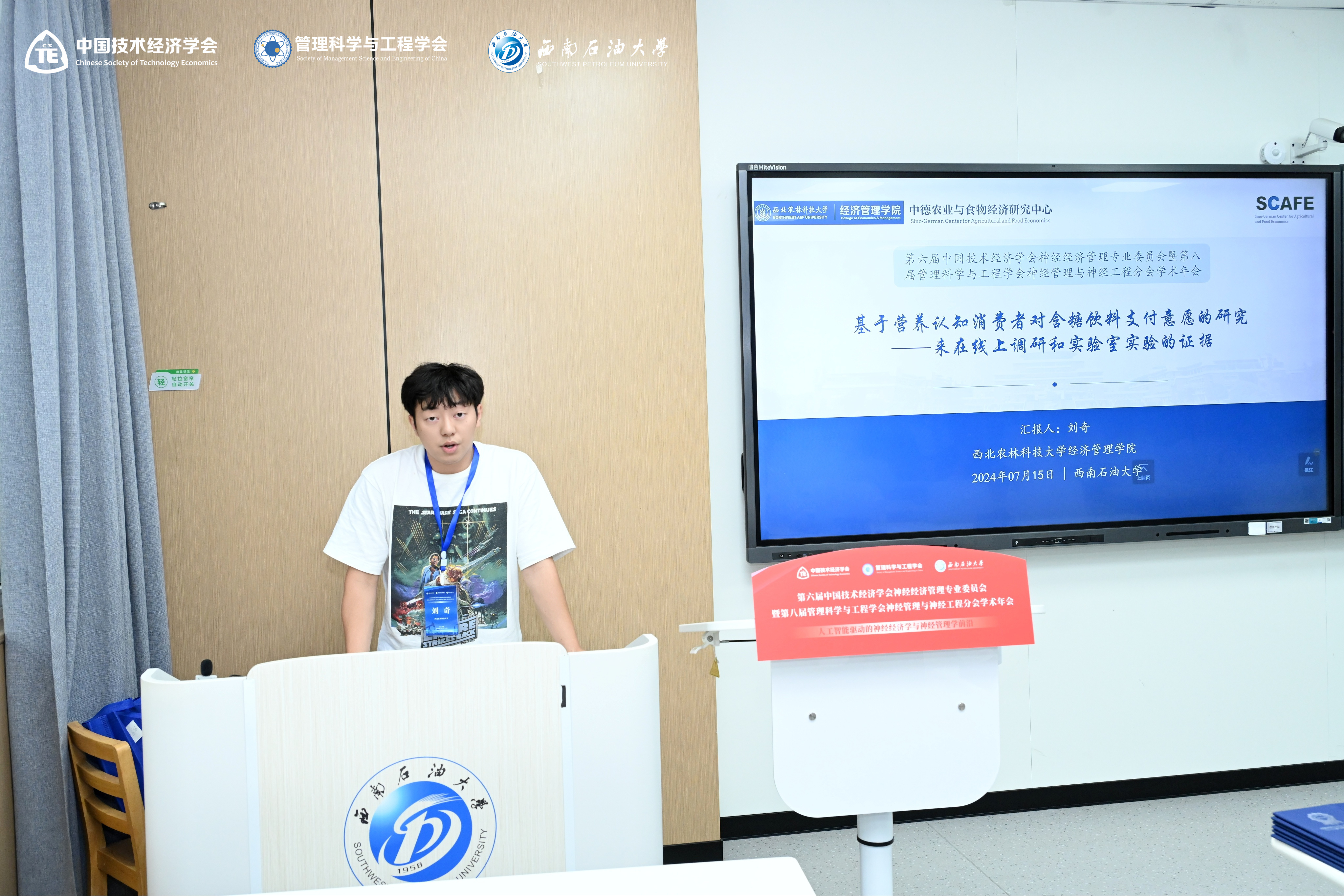 2024年7月15日,由中国技术经济学会神经经济管理专业委员会、管理科学与工程学会神经管理与神经工程分会、西南石油大学主办,西南石油大学350vip浦京集团官网承办的“第六届中国技术经济学会神经经济管理专业委员会暨第八届管理科学与工程学会神经管理与神经工程分会学术年会”在西南石油大学召开。团队研究生刘奇受邀参加此次会议。