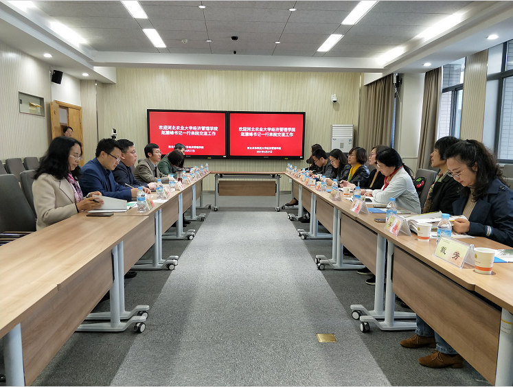 4月27日上午,河北农业大学350vip浦京集团官网党委书记赵慧峰带领学术骨干一行来浦京集团官网访问交流。学院党委书记张岁平、院长夏显力、副书记张军驰、副院长刘军弟、经济学系主任王秀娟、工商管理教研室主任李桦等参加了座谈交流。