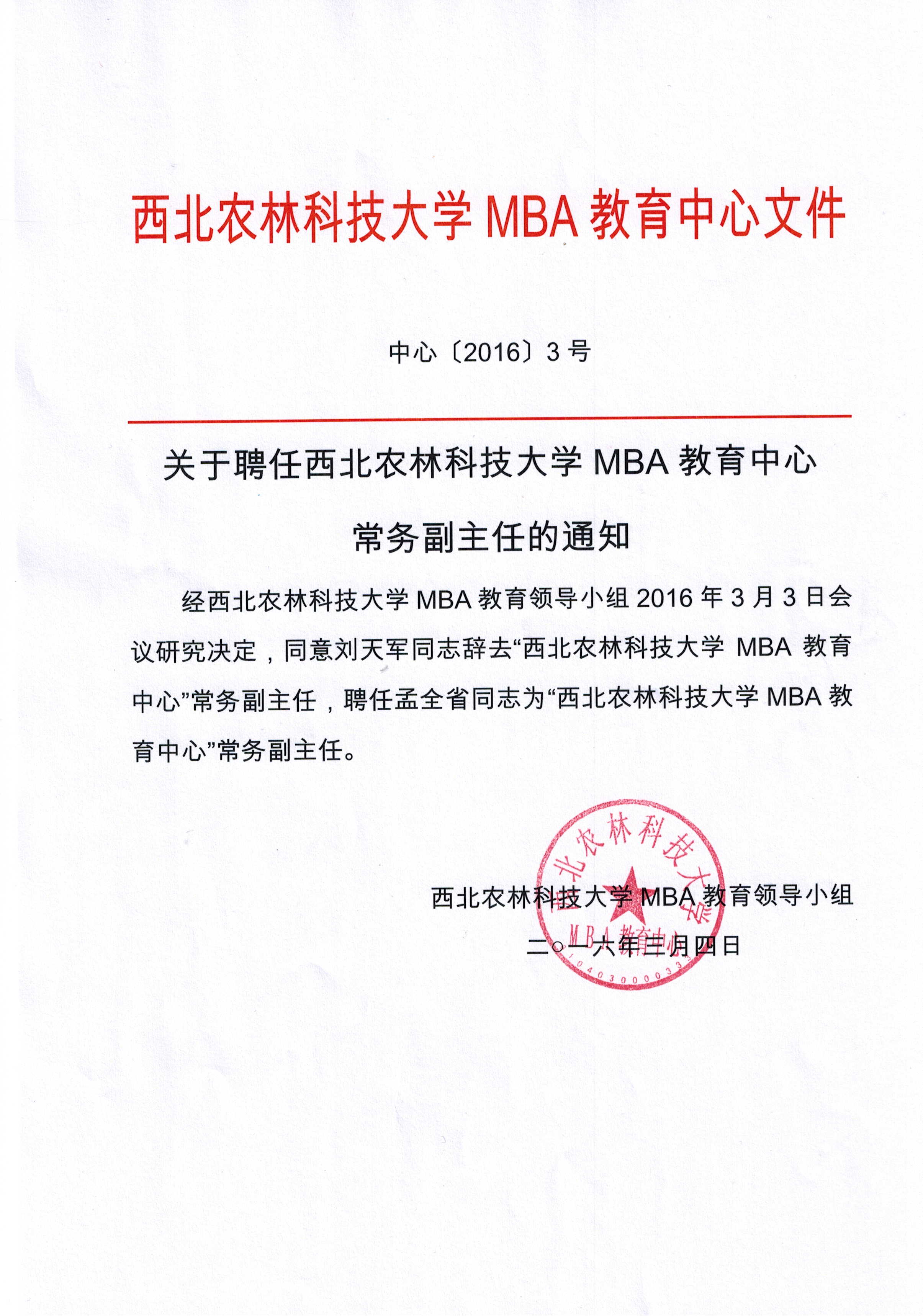 » 关于聘任350vip浦京集团官网MBA教育中心常务副主任的通知