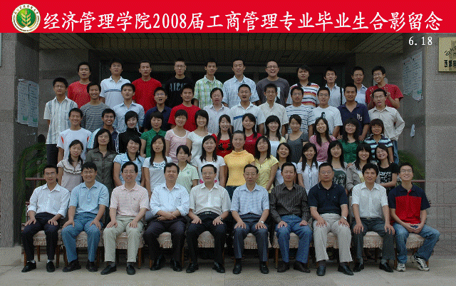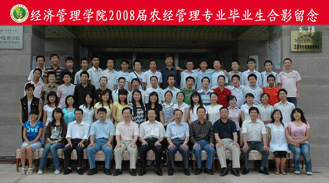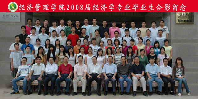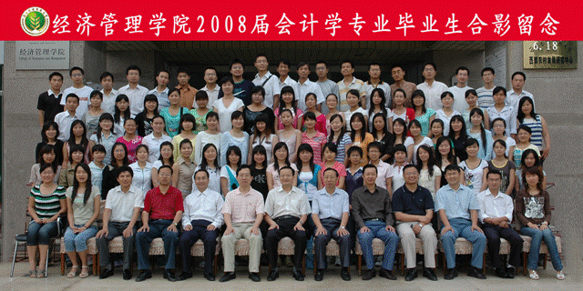 前排从左到右依次为:辅导员郭晓勇、辅导员王家武、系主任吕德宏、副院长温晓林、院党委副书记聂海、副院长李录堂、 院党委书记罗剑朝、院长霍学喜、副院长孟全省、副院长姚顺波、班主任曲云峰、班主任牛荣