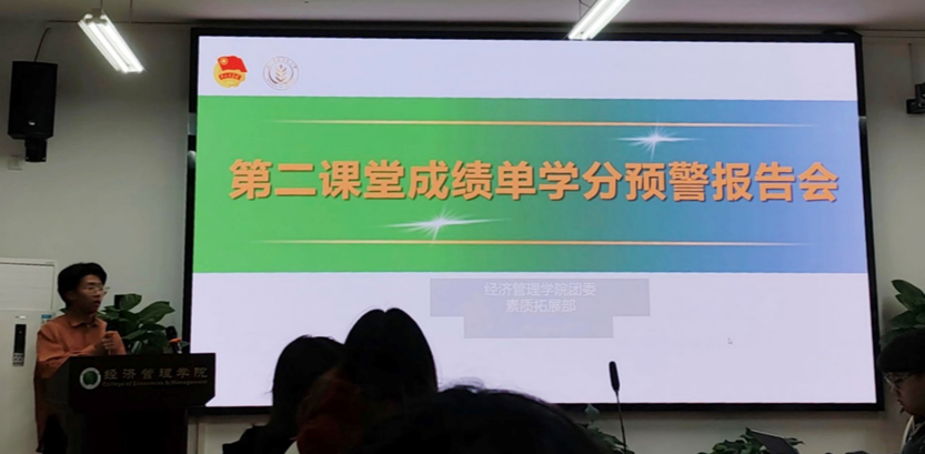 会上,学院团委素拓部负责人刘鑫向大家进行了第二课堂学分预警工作报告。强调了第一课堂与第二课堂的界限和关系,并详细介绍了第二课堂学分的获取办法,以及不同板块二课学分的授予细则。指出了不同级别预警及其对应不同年级学生低分的情况,并给出了相应的建议,帮助同学们提前规划,避免学分不足的风险。