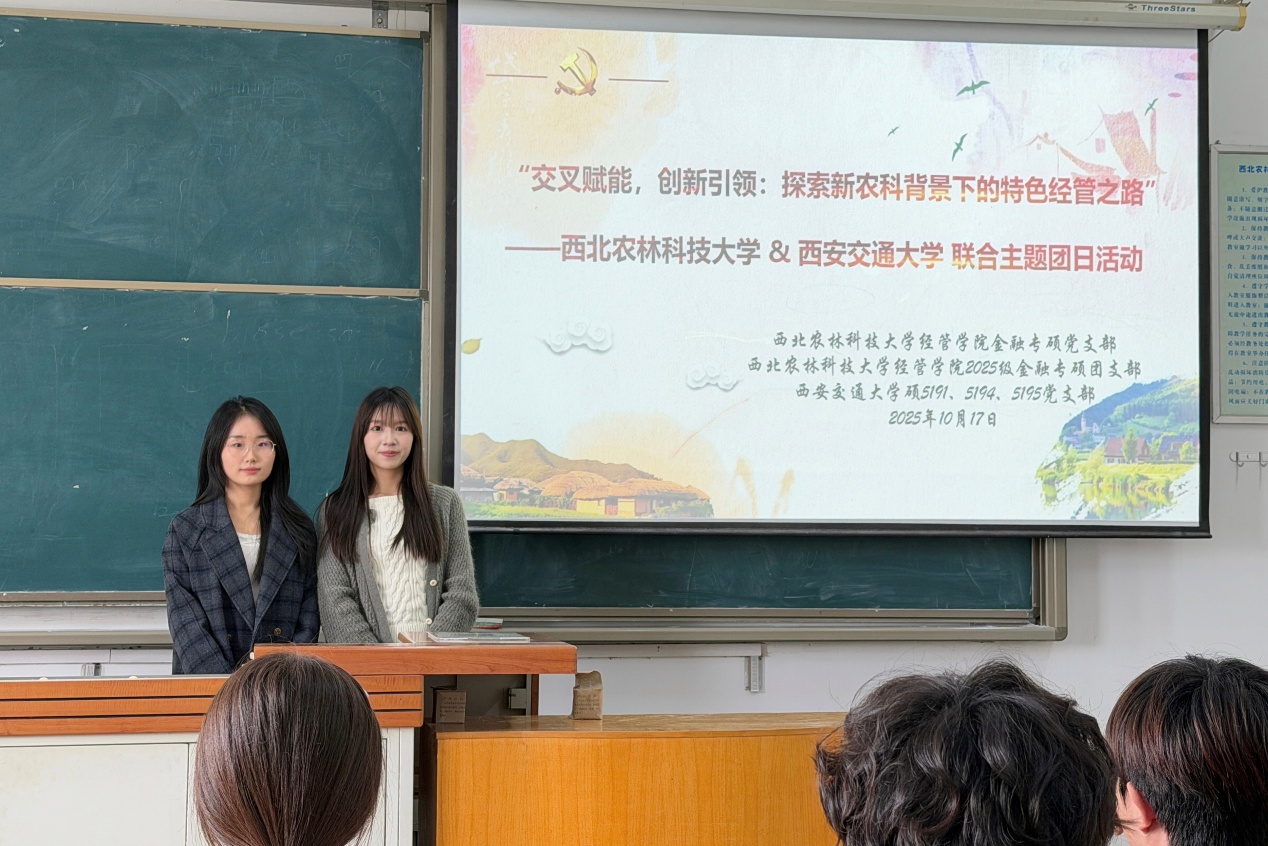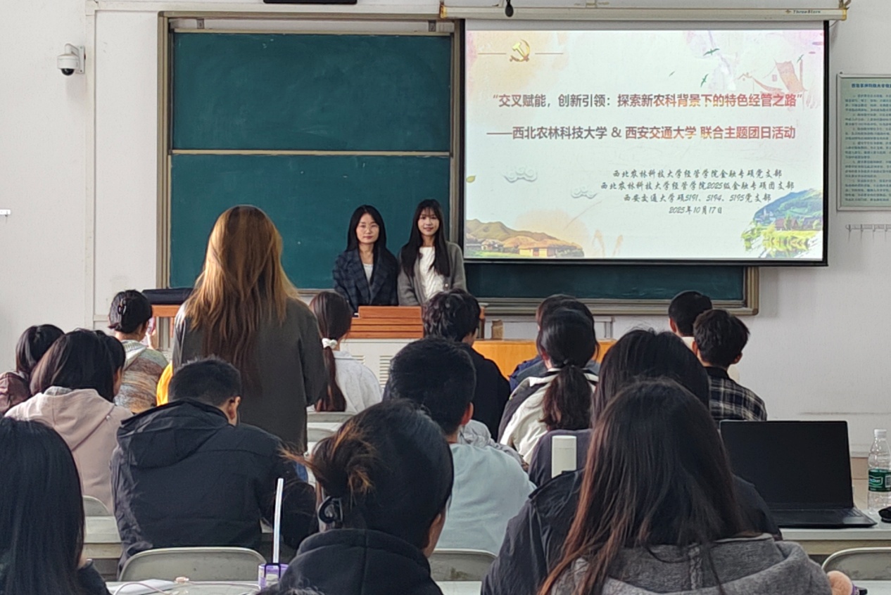 为深化学生对“新农科”与“新经管”交叉融合内涵的理解,激发创新思维探索学科交叉新路径,搭建党团支部沟通桥梁,2025年10月17日下午,350vip浦京集团官网2025级金融专硕团支部与西安交通大学硕5191党支部、硕5194、硕5195团支部成功开展共建交流活动。两校学子在思想碰撞与经验分享中,共探新农科背景下特色经管之路,明晰学科交叉赋能乡村振兴的实践方向。