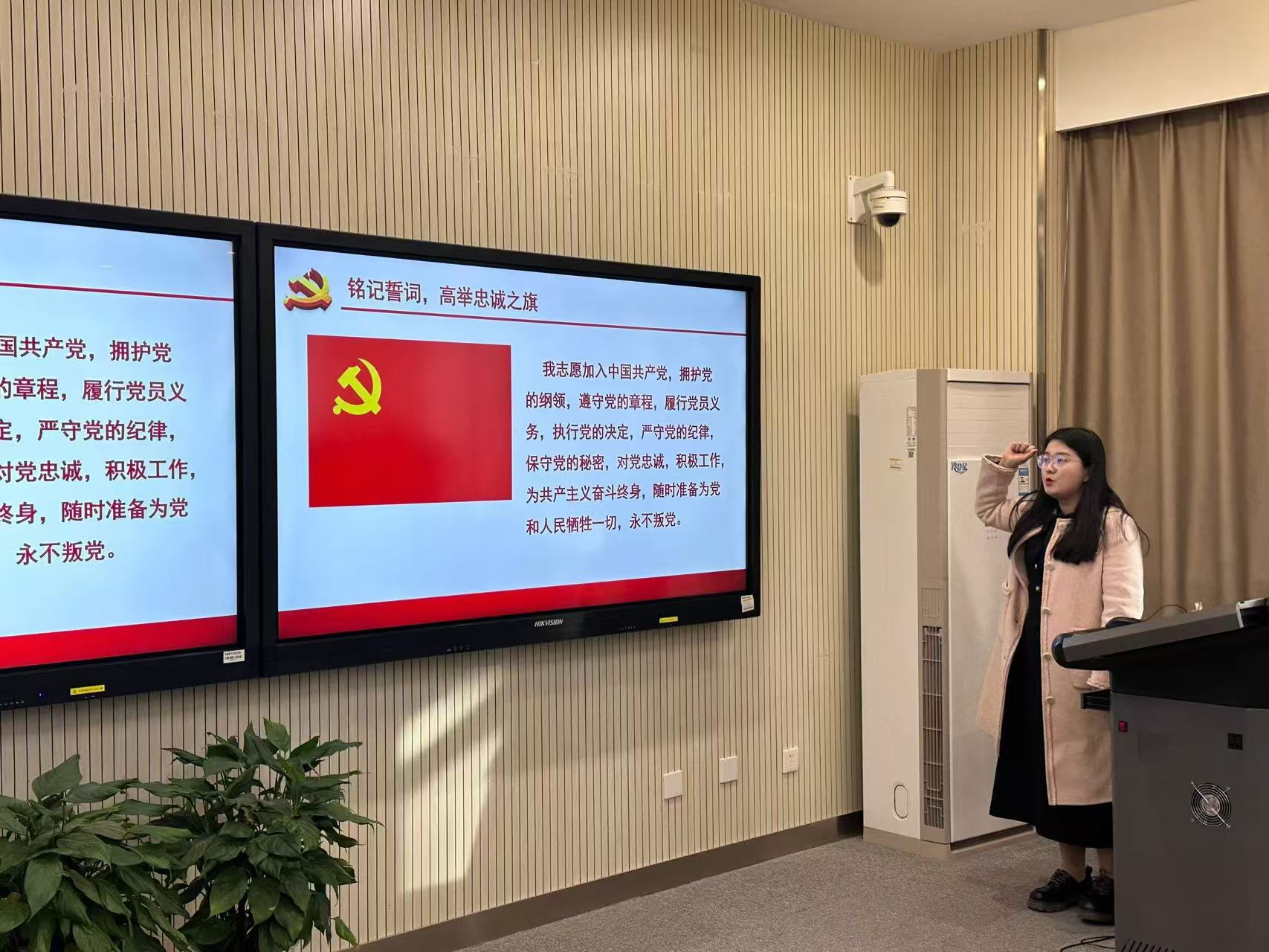 首先,三名预备党员依次上台,认真阐述自己的学习情况、对党的认识、志愿服务活动等方面的表现,表达了渴望如期转正、继续为党和人民奉献的强烈愿望。随后,入党介绍人根据对预备党员的了解,客观公正地评价了预备党员在考察期间的综合情况。接着,与会党员秉持严肃认真、公平公正的态度,对三名预备党员能否按期转正进行了充分讨论,经无记名投票表决,一致同意批准王永安同志、张研同志、邢开心同志按期转正转为正式党员。紧接着,新生党员逐个进行自我介绍,分享自己的入党初心以及对未来在党支部中发挥作用的展望,党支部书记王晓赫同志向新生党员分发党章、党徽以及二十大相关书籍,激励新生党员同志在今后的日子里时刻以党员的身份要求自己,积极投身于党支部的建设工作中。