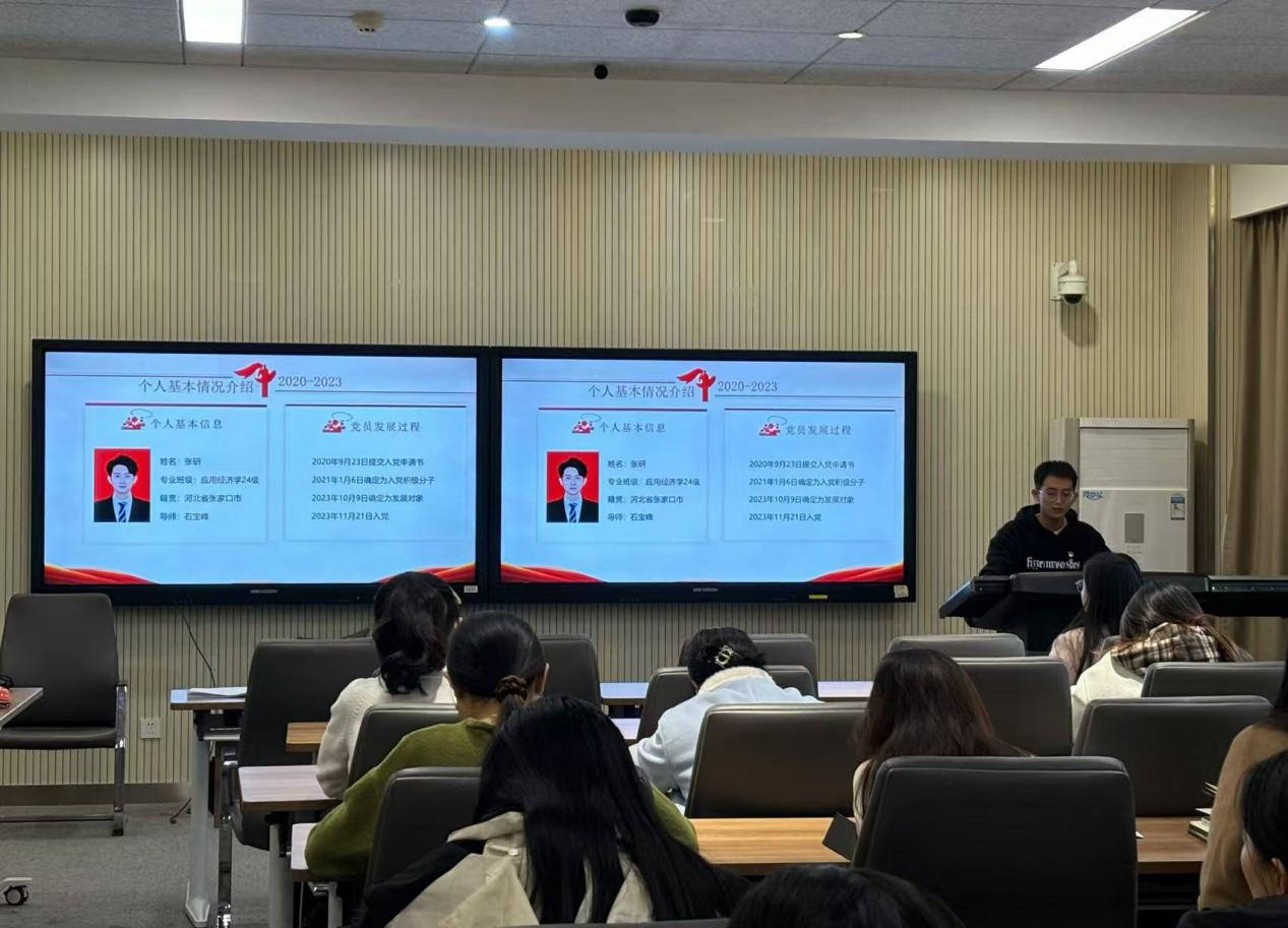 11月21日下午,应经学硕党支部预备党员转正暨党员迎新会议在经管C403会议室隆重举行,会议由党支部书记王晓赫同志主持,党支部全体成员参与。会议旨在完成预备党员转正相关事宜,并欢迎新生党员加入党支部,增强党支部的凝聚力与战斗力。