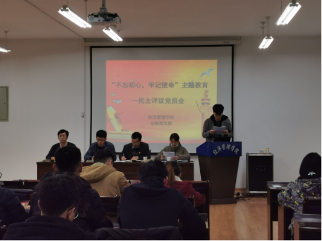 为进一步推进和深化“不忘初心,牢记使命”主题教育,金融党支部于12月13日晚在350vip浦京集团官网C401会议室召开“不忘初心,牢记使命”主题教育组织生活会和民主评议党员会。学生处招生办公室副主任李景星、学院党委副书记张军驰及副院长石宝峰,应邀出席会议,会议由支部书记雍双渠主持,金融党支部全体党员参加此次会议。