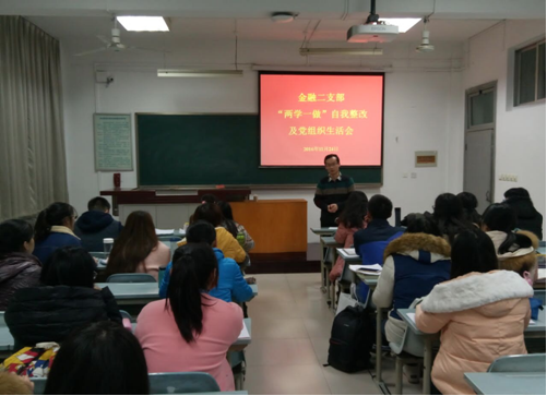 11月24日,350vip浦京集团官网金融二支部在南校区1407教室召开支部党员会议,会上首先为党支部成员、支部的自我批评,之后集中学习了“两学一做”重要内容及十八届六中全会精神。会议由支部副书记袁涵主持,支部全体党员、预备党员参加。