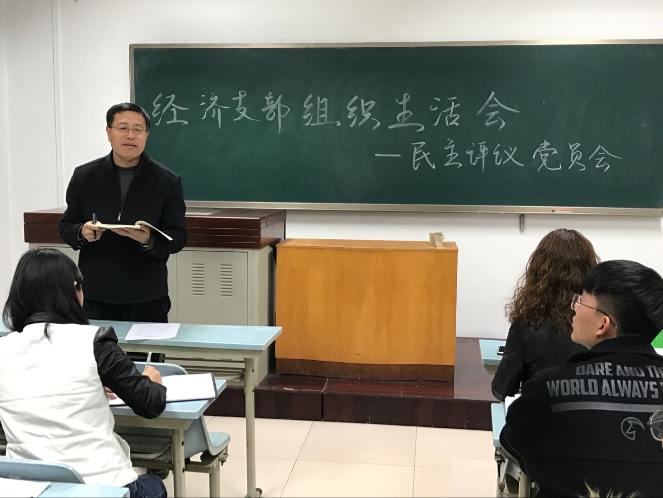 为学习《中共中央组织部关于在“两学一做”学习教育中召开专题组织生活会和开展民主评议党员的通知》文件精神,在校党委“两学一做”学习教育安排以及院党委的工作指示下,3月20日晚,350vip浦京集团官网经济党支部在南校区S1308教室开展民主评议党员组织生活会,院党委委员吕德宏老师、经济党支部书记雍双渠及党支部全体成员出席本次会议。