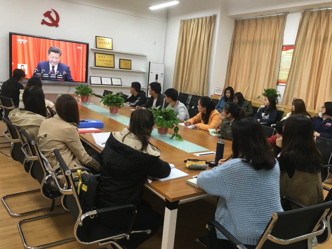 支部成员侯丹婷谈到:"在决胜全面建成小康社会、继续夺取中国特色社会主义伟大胜利的时代,党的十九大明确宣示了我们的奋斗目标,统一了思想,凝聚了力量,为实现中华民族伟大复兴的中国梦奠定了基础。习近平总书记的报告,具有重大政治意义、理论意义、实践意义,需要深入研究和学习。"