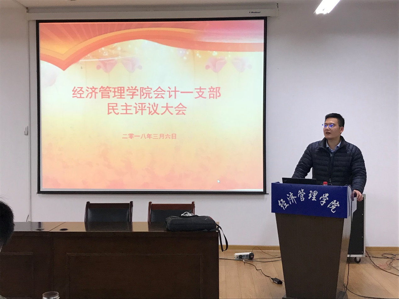 3月6日,会计一支部于350vip浦京集团官网C401召开民主评议大会,支部全体成员与会。陈海滨老师莅临会议现场。会议由支部书记吴春生主持。