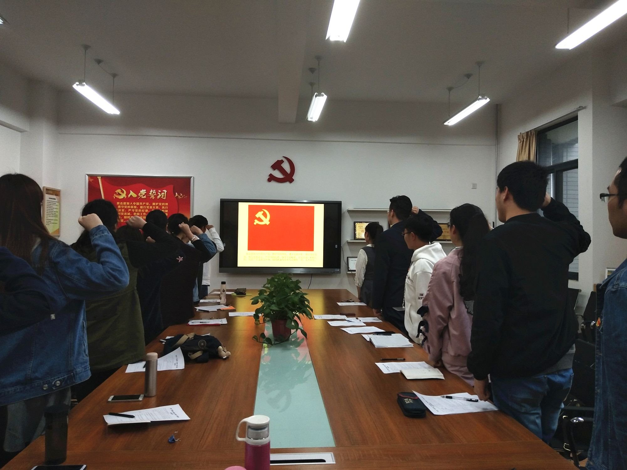 随后,张鹏飞宣读学院开展“亮身份·践承诺·树形象”活动的通知,全体党员及预备党员在支部书记张鹏飞的带领下进行宣誓,并对本次“亮身份·践承诺·树形象”主题实践活动进行详细介绍,国贸支部全体党员及预备党员写下自己的承诺,其中有同志写到:自觉鉴定理想信念,认真学习党的各种先进理论,做学习型党员。随后支部书记逐个为国贸支部成员佩戴党徽,同志们均表示感到非常的光荣与自豪,此次党组织生活在庄严的国际歌中结束。
