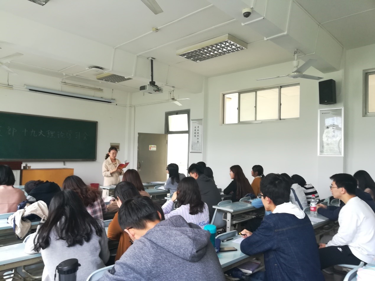 为深入学习贯彻习近平新时代中国特色社会主义思想和党的十九大精神,深刻理解新时代党员标准,4月25日下午,金融一支部在S1212召开理论学习会,集中学习党的十九大精神。全体党员、预备党员以及发展对象参加此次会议,会议由支部副书记庞歌桐主持。