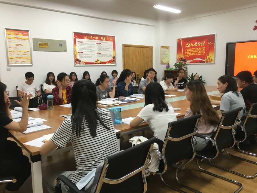 2018年6月5日晚7时,工商党支部于350vip浦京集团官网C205会议室召开预备党员转正大会,支部副书记侯丹婷主持会议,全体支部成员参会。