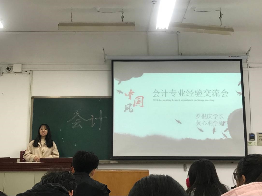在主持人简短的介绍后,同学们带着热切期盼的眼神迎来了“传说中”保研的学霸。首先是由保研到上海财经学院会计学院的黄心羽学姐上台发言,她依次从学习成绩、大学英语学习、科研及比赛三个方面为同学们进行了介绍。针对会计专业的保研,她说学习成绩依旧是最重要的部分,同时还有很多保研的基本条件,需要我们在课余的时间关注最新的政策,做充分的准备。当然,天道酬勤,所有的成功背后都洒满了奋斗的汗水。紧接着是会计党支部的组织委员罗根庆学长。他先跟大家介绍了申请入党的流程,解决了一些想入党的同学的困扰。其次,他跟我们详细介绍了大学四年的规划以及前三年取得的成绩。他跟我们说,学习是大学生活里面最重要的一件事,但娱乐、学生工作和学习也要协调好。丰富多彩的大学生活是我们青春里最浓厚的一笔。