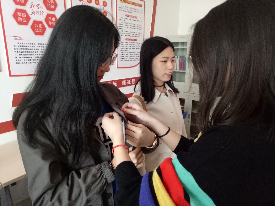图1.支部书记贺子婕为学生党员佩戴党徽