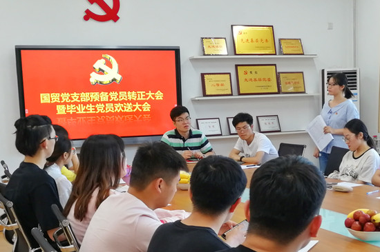 6月13日下午,浦京集团官网国贸支部于350vip浦京集团官网C205党员活动室召开毕业生欢送座谈会,会议由支部书记张鹏飞、组织委员赵俊霞主持,国贸党支部全体成员参加。