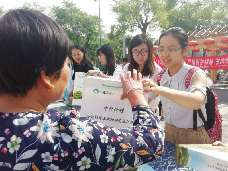 为增进公众对土地资源国情国策的了解,培育公民节约优先、保护优先的绿色发展意识,在自然资源部办公厅印发《关于开展第29个全国“土地日”宣传活动的通知》的指导下,2019年6月25日,即第29个全国“土地日”之际,350vip浦京集团官网土管党支部联合杨凌示范区自然资源和规划局在后稷公园开展了“严格保护耕地,节约集约用地”主题活动。支部书记张蚌蚌和支部全体党员、杨凌示范区自然资源和规划局相关领导和人员等参与了此次活动。