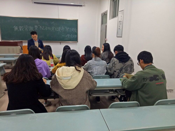 2019年10月16日下午5时,土管党支部在南校区一号教学楼1113教室举行了党徽授予仪式以及开展《习近平关于“不忘初心,牢记使命”论述摘编》原著原文学习活动并由支部书记讲党课,会议由党支部副书记刘博蕾主持,支部全体成员参加。