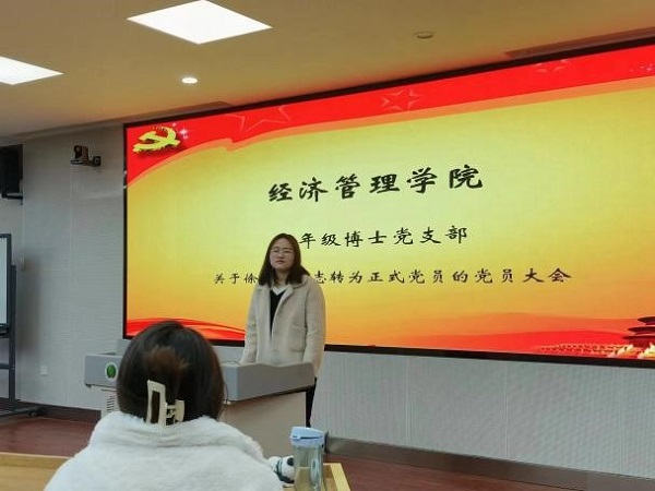 会议讨论了关于张雨田、徐苗苗和符越同志转为中共正式党员的相关事宜。张雨田、徐苗苗和符越同志分别从思想政治、科研学习及社会服务等方面依次汇报了自己在预备期内的表现,并向大会提出转正申请;之后入党介绍人分别介绍预备党员有关情况,并对其能否转正表明意见,与会党员就预备党员能否转正进行充分讨论,并推选出监计票人,采取无记名投票方式进行表决。按照赞成人数超过应到会具有表决权正式党员的半数才能通过预备党员转正的规定,大会同意张雨田、徐苗苗和符越同志按期转正为中共正式党员。