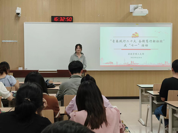 为庆祝中国共产党成立102周年,进一步弘扬建党精神,强化党员意识,6月26日下午,农经学硕三支部于S1110教室开展了“青春践行二十大 奋楫笃行新征程”庆“七一”主题党日活动。支部全体党员参会,会议由支部书记王慧主持。
