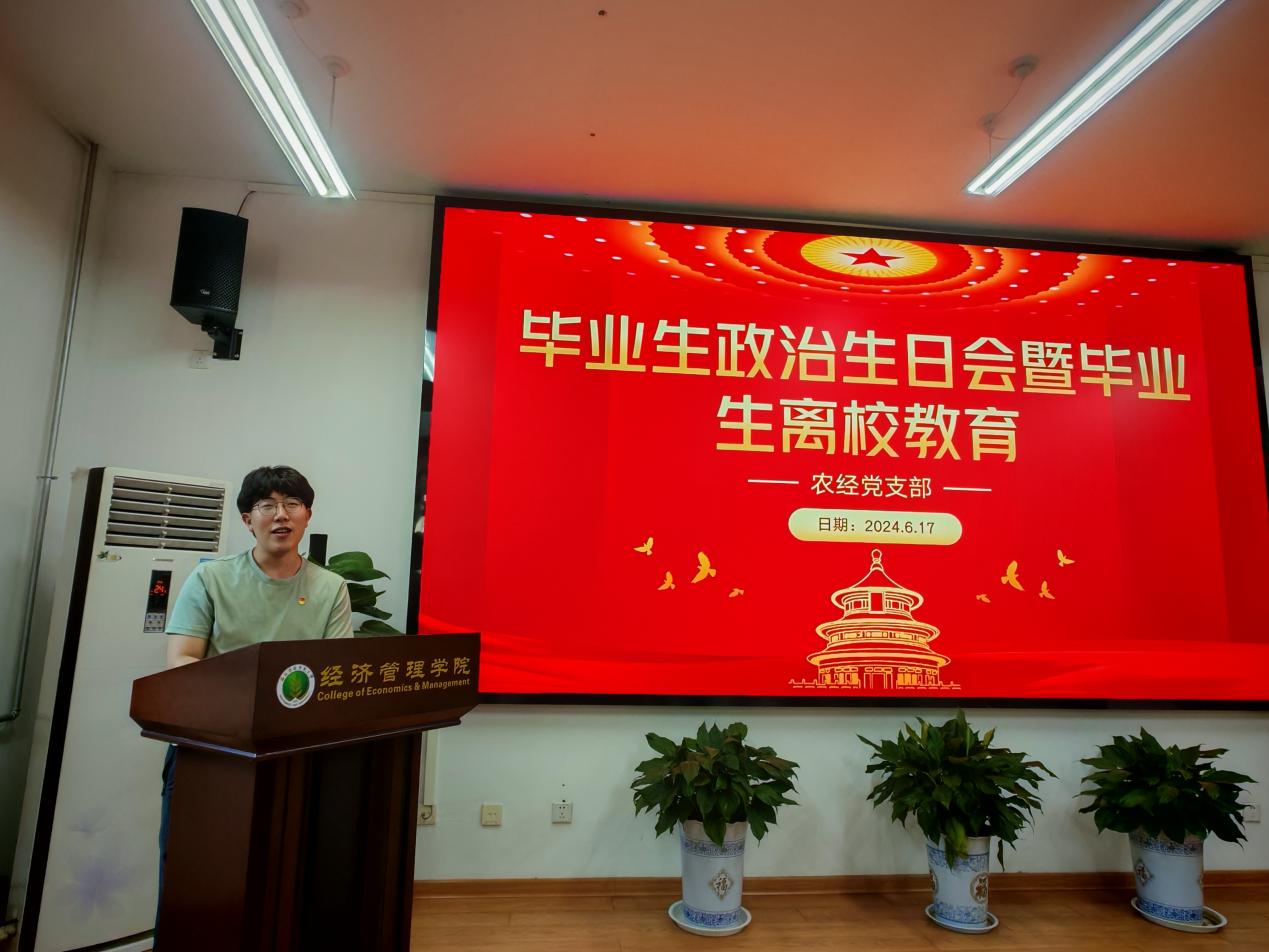时光清浅,岁月流转,又是一年毕业季,6月17日,党支部在C304会议室召开2024届毕业生欢送会,学院党委副书记张军驰、农经党支部全体2024届毕业生党员参加。