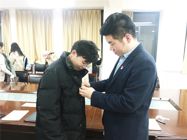 首先,陈玉梅等六名发展对象依次结合一年以来的学习、工作、生活以及思想情况进行了汇报,经支部全体正式党员投票表决,一致同意陈玉梅等六名发展对象吸收为预备党员。随后,支部副书记王立成带领预备党员进行入党宣誓,支部全体成员重温入党誓词,为保证学校“亮身份、树形象、践承诺”活动的持续开展,支部书记张鹏飞为预备党员佩戴党徽。